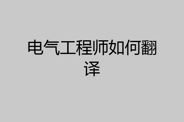 电气工程师如何翻译