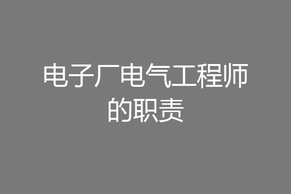 电子厂电气工程师的职责