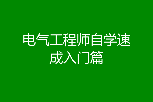 电气工程师自学速成入门篇