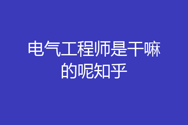 电气工程师是干嘛的呢知乎