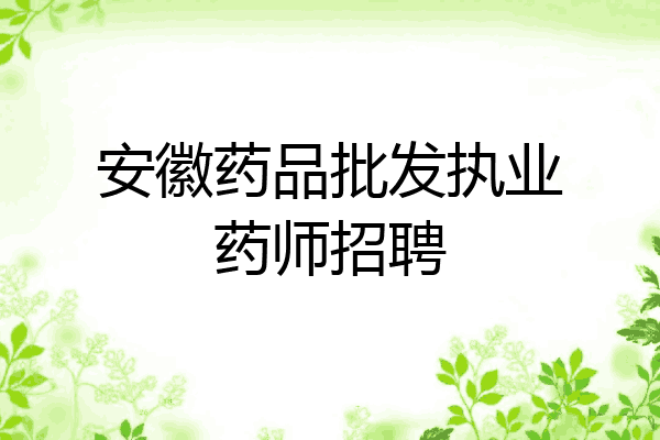 安徽药品批发执业药师招聘